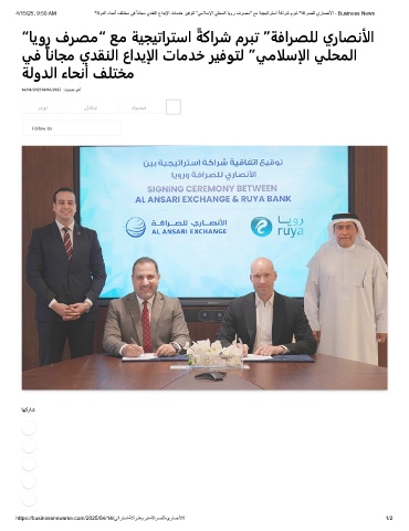 4/15/25, 9:50 AM "ﺔﻟودﻟا ءﺎﺣﻧأ فﻠﺗﺧﻣ ﻲﻓ ً ﺎﻧﺎﺟﻣ يدﻘﻧﻟا عادﯾﻹا تﺎﻣدﺧ رﯾﻓوﺗﻟ "ﻲﻣﻼﺳﻹا ﻲﻠﺣﻣﻟا ﺎﯾور فرﺻﻣ" ﻊﻣ ﺔﯾﺟﯾﺗارﺗﺳا ً ﺔﻛارﺷ مرﺑﺗ "ﺔﻓارﺻﻠﻟ يرﺎﺻﻧﻷا - Business News