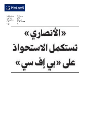 Publication: Al Khaleej Country: UAE Circulation: 121,141 Date: 11 April 2025 Page: 01