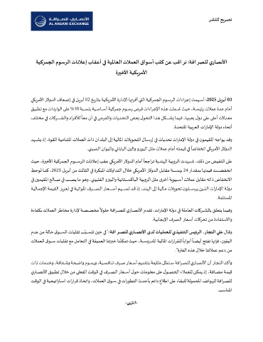 ةءﺎﻔﻜﺑ تﻼﻤﻌﻟا ﺮﻃﺎﺨﻣ ةرادﻹ ﺔــــــﺼــــــﺼﺨﻣ ﻻﻮﻠﺣ ﺔﻓاﺮــــــﺼﻠﻟ يرﺎــــــﺼﻧﻷا مﺪﻘﺗ ،تارﺎﻣﻹا ﺔﻟود �� ﺔﻠﻣﺎﻌﻟا تﺎ�ﺮــــــﺸﻟﺎﺑ ﻖﻠﻌﺘﻳ ﺎﻤﻴﻓو