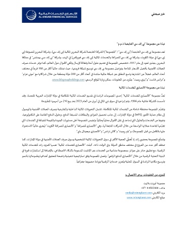 ﺔﻴﻟﺎﳌا تﺎﻣﺪخ�ﻟ يرﺎﺼﻧﻷا ﺔﻋﻮﻤﺠﻣ ﻦﻋ ةﺬﺒﻧ