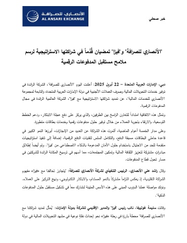 ﻲﻓ ةدﺌارﻟا ﺔﻛرﺸﻟا ،"ﺔﻓارﺼﻠﻟ يرﺎﺼﻨﻷا " موﯿﻟا تﻨﻠﻋأ : 2025 ﻞ�رﺒأ 22 – ةدحتمﻟا ﺔ��رﻌﻟا تارﺎﻤﻹا ،ﻲﺒد