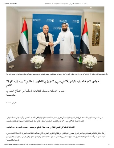 7/29/25, 10:19 AM "مھﺎﻔﺗ ةرﻛذﻣ نﺎﻣرﺑﯾ "يرﺎﻘﻌﻟا رﯾوطﺗﻠﻟ يزﯾزﻋ"و ﻲﺑد ﻲﻓ "ﺔﯾرﺷﺑﻟا دراوﻣﻟا ﺔﯾﻣﻧﺗ سﻠﺟﻣ