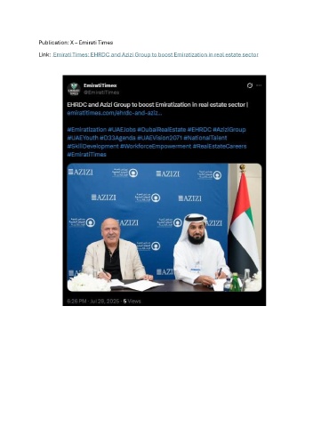 Publication: X – Emirati Times Link: Emirati Times: EHRDC and Azizi Group to boost Emiratization in real estate sector