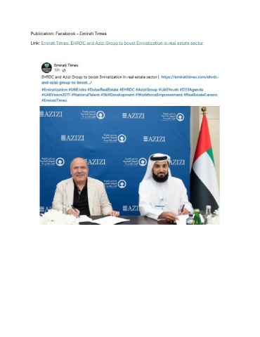 Publication: Facebook – Emirati Times Link: Emirati Times: EHRDC and Azizi Group to boost Emiratization in real estate sector