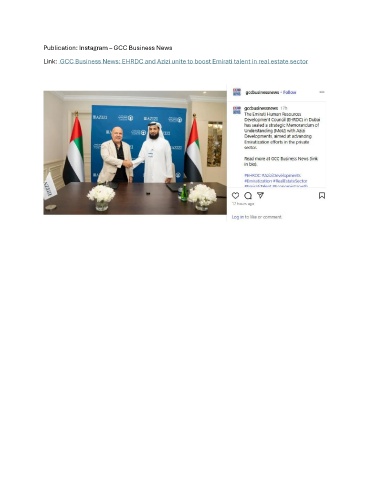 Publication: Instagram – GCC Business News Link: GCC Business News: EHRDC and Azizi unite to boost Emirati talent in real estate sector