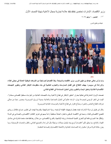 7/11/25, 1:44 PM لوﻷا فﺻﻧﻟا ﺔﯾﺎﮭﻧﺑ ﺔﯾذﻏﻷا لﺎﺟﻣﺑ ﺔﯾرﺎﺟﺗ ﺔﻣﻼﻋ 40.486 نﺿﺗﺣﺗ تارﺎﻣﻹا :دﺎﺻﺗﻗﻻا رﯾزو - Hatt Post | تﺳوﺑ تﺎھHatt Post | تﺳوﺑ تﺎھ