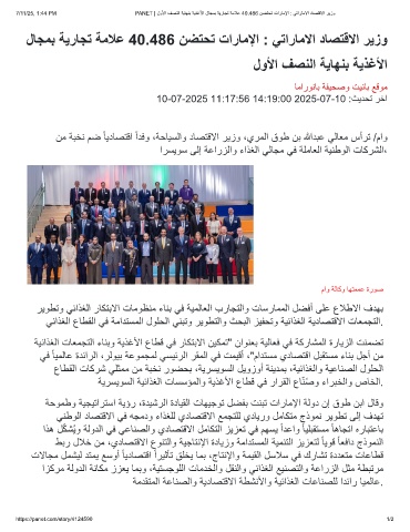 7/11/25, 1:44 PM PANET | لوﻷا فﺻﻧﻟا ﺔﯾﺎﮭﻧﺑ ﺔﯾذﻏﻷا لﺎﺟﻣﺑ ﺔﯾرﺎﺟﺗ ﺔﻣﻼﻋ 40.486 نﺿﺗﺣﺗ تارﺎﻣﻹا : ﻲﺗارﺎﻣﻻا دﺎﺻﺗﻗﻻا رﯾزو