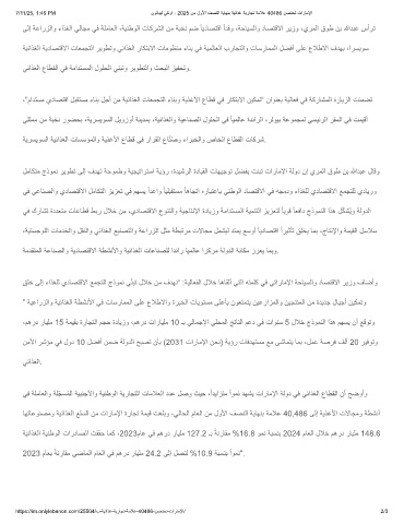 ﻖﻠﺧ ﻰﻟإ ءاذﻐﻠﻟ يدﺎﺻﺗﻗﻻا ﻊﻣﺟﺗﻟا جذوﻣﻧ ﻲّﻧﺑﺗ لﻼﺧ نﻣ فدﮭﻧ“ :ﺔﯾﻟﺎﻌﻔﻟا لﻼﺧ ﺎھﺎﻘﻟأ ﻲﺗﻟا ﮫﺗﻣﻠﻛ ﻲﻓ ﻲﺗارﺎﻣﻹا ﺔﺣﺎﯾﺳﻟاو دﺎﺻﺗﻗﻻا رﯾزو فﺎﺿأو