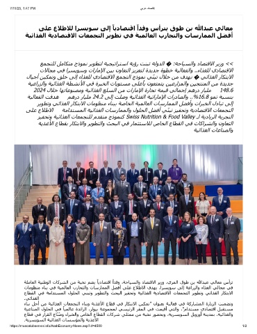 ﺰﯿﻔﺤﺗو ﺔﯿﺋاﺬﻐﻟا تﺎﻌﻤﺠﺘﻠﻟ مﺪﻘﺘﻣ جذﻮﻤﻨﻛ Swiss Nutrition & Food Valley ـﻟ ﺔﻳدﺎﻳﺮﻟا ﺔﺑﺮﺠﺘﻟا