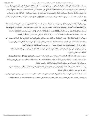Swiss Nutrition &Food Valley "يرﺳﯾوﺳﻟا ءاذﻐﻟاو ﺔﯾذﻐﺗﻟا يداو" ـﻟ ﺔﯾدﺎﯾرﻟا ﺔﺑرﺟﺗﻟا ﻰﻠﻋ عﻼطﻻا دﻓوﻟا ةرﺎﯾز تﻧﻣﺿﺗو