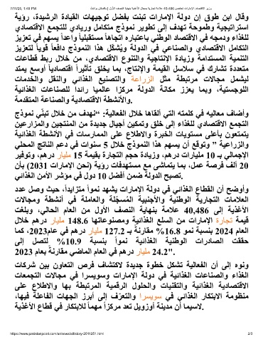 دﺪﻋ ﻞﺻو ﺚﯿﺣ ،ًاﺪﯾاﺰﺘﻣ ًاﻮﻤﻧ ﺪﮭﺸﯾ تارﺎﻣﻹا ﺔﻟود ﻲﻓ ﻲﺋاﺬﻐﻟا عﺎﻄﻘﻟا نأ ﺢﺿوأو
