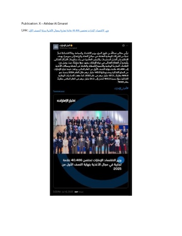 Publication: X – Akhbar Al Emarat Link: لولأا فصنلا ةياهنب ةيذغلأا لاجمب ةيراجت ةملاع 40.486 نضتحت تاراملإا :داصتقلاا ريزو