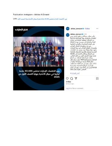 Publication: Instagram – Akhbar Al Emarat Link: لولأا فصنلا ةياهنب ةيذغلأا لاجمب ةيراجت ةملاع 40.486 نضتحت تاراملإا :داصتقلاا ريزو