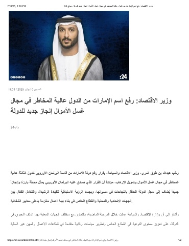 7/11/25, 1:19 PM 24 ﻊﻗوﻣ - ﺔﻟودﻠﻟ دﯾدﺟ زﺎﺟﻧإ لاوﻣﻷا لﺳﻏ لﺎﺟﻣ ﻲﻓ رطﺎﺧﻣﻟا ﺔﯾﻟﺎﻋ لودﻟا نﻣ تارﺎﻣﻹا مﺳا ﻊﻓر :دﺎﺻﺗﻗﻻا رﯾزو
