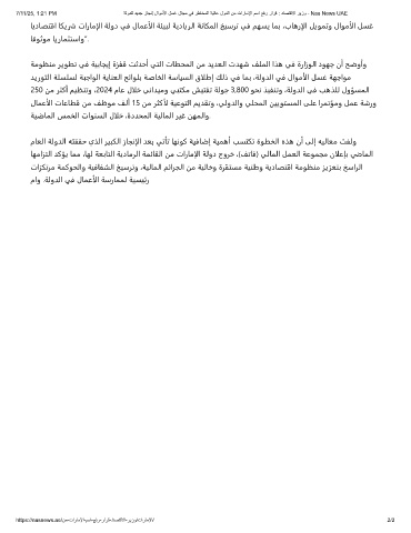 7/11/25, 1:21 PM ﺔﻟودﻠﻟ دﯾدﺟ زﺎﺟﻧإ لاوﻣﻷا لﺳﻏ لﺎﺟﻣ ﻲﻓ رطﺎﺧﻣﻟا ﺔﯾﻟﺎﻋ لودﻟا نﻣ تارﺎﻣﻹا مﺳا ﻊﻓر رارﻗ : دﺎﺻﺗﻗﻻا رﯾزو - Nas News UAE