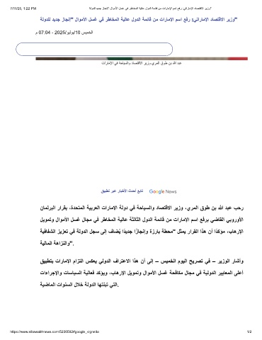 7/11/25, 1:22 PM ﺔﻟودﻠﻟ دﯾدﺟ زﺎﺟﻧإ" لاوﻣﻷا لﺳﻏ ﻲﻓ رطﺎﺧﻣﻟا ﺔﯾﻟﺎﻋ لودﻟا ﺔﻣﺋﺎﻗ نﻣ تارﺎﻣﻹا مﺳا ﻊﻓر :ﻲﺗارﺎﻣﻹا دﺎﺻﺗﻗﻻا رﯾزو"