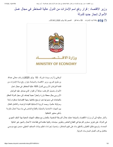 7/11/25, 1:24 PM تﻧﯾوﺑ ودرأ - ﺔﻟودﻠﻟ دﯾدﺟ زﺎﺟﻧإ لاوﻣﻷا لﺳﻏ لﺎﺟﻣ ﻲﻓ رطﺎﺧﻣﻟا ﺔﯾﻟﺎﻋ لودﻟا نﻣ تارﺎﻣﻹا مﺳا ﻊﻓر رارﻗ : دﺎﺻﺗﻗﻻا رﯾزو