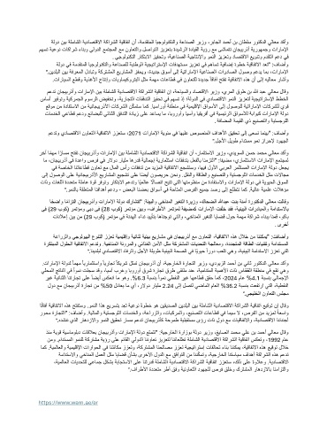 رخ آ اًمهم ا ً راسم حتفت ناجيبرذأو تاراملإا نيب ةلماشلا ةيداصتقلاا ةكارشلا ةيقافتا نأ ،رامثتسلاا ريزو ،يديوسلا نسح دمحم يلاعم دكأو