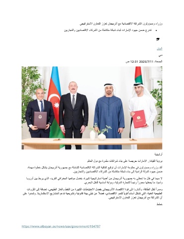 ،ةمهم ةوطخ لكشي ناجيبرذأ ةيروهمج عم ةلماشلا ةيداصتقلاا ةكارشلا ةيقافتا عيقوت نأ تاراملإا ةموكح يف نولوؤسمو ءارزو دكأ