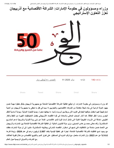 7/11/25, 1:31 PM ﻲﺟﯾﺗارﺗﺳﻹا نوﺎﻌﺗﻟا ززﻌﺗ نﺎﺟﯾﺑرذأ ﻊﻣ ﺔﯾدﺎﺻﺗﻗﻻا ﺔﻛارﺷﻟا :تارﺎﻣﻹا ﺔﻣوﻛﺣ ﻲﻓ نوﻟوؤﺳﻣو ءارزو | ﮫﯾﺗارﺎﻣﻹا رﺟﻔﻟا ةدﯾرﺟ | ﮫﯾﺗارﺎﻣﻹا رﺟﻔﻟا ةدﯾرﺟ