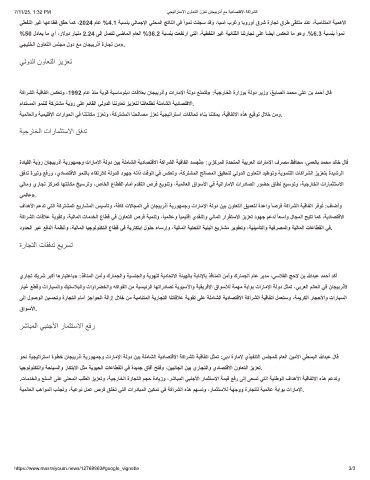 وﺣﻧ ﺔﯾﺟﯾﺗارﺗﺳا ةوطﺧ نﺎﺟﯾﺑرذأ ﺔﯾروﮭﻣﺟو تارﺎﻣﻹا ﺔﻟود نﯾﺑ ﺔﻠﻣﺎﺷﻟا ﺔﯾدﺎﺻﺗﻗﻻا ﺔﻛارﺷﻟا ﺔﯾﻗﺎﻔﺗا لﺛﻣﺗ :ﻲﺑد ةرﺎﻣﻹ يذﯾﻔﻧﺗﻟا سﻠﺟﻣﻠﻟ مﺎﻌﻟا نﯾﻣﻷا ﻲطﺳﺑﻟا ﷲدﺑﻋ لﺎﻗ