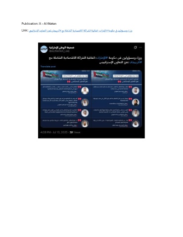 Publication: X – Al Watan Link: يجيتارتسلإا نواعتلا ززعت ناجيبرذأ# عم ةلماشلا ةيداصتقلاا ةكارشلا ةيقافتا :تاراملإا# ةموكح يف نولوؤسمو ءارزو