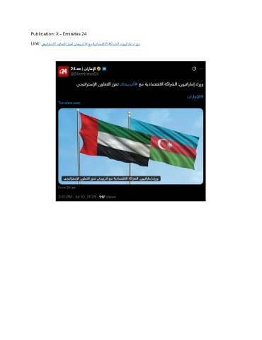 Publication: X – Emirates 24 Link: يجيتارتسلإا نواعتلا ززعت ناجيبرذأ# عم ةيداصتقلاا ةكارشلا :نويتارامإ ءارزو
