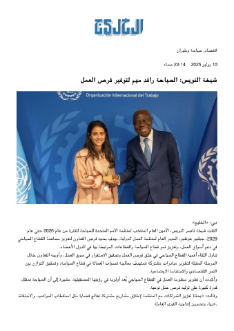 ﻞﻤﻌﻟا صﺮﻓ ﺮﻴﻓﻮﺘﻟ ﻢﻬﻣ ﺪﻓار ﺔﺣﺎﻴﺴﻟا :ﺲﻳﻮﻨﻟا ﺔﺨﻴﺷ