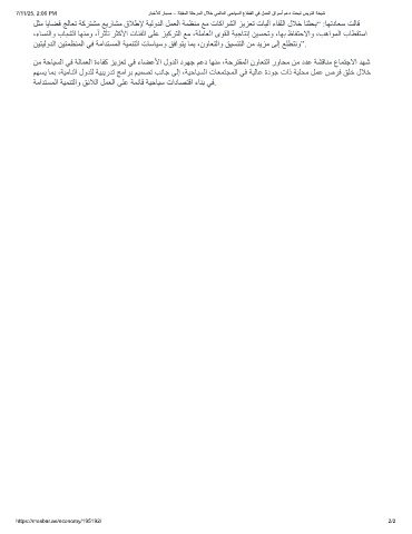 ﻦﻣ ﺔﺣﺎﯿﺴﻟا ﻲﻓ ﺔﻟﺎﻤﻌﻟا ةءﺎﻔﻛ ﺰﯾﺰﻌﺗ ﻲﻓ ءﺎﻀﻋﻷا لوﺪﻟا دﻮﮭﺟ ﻢﻋد ﺎﮭﻨﻣ ،ﺔﺣﺮﺘﻘﻤﻟا نوﺎﻌﺘﻟا روﺎﺤﻣ ﻦﻣ دﺪﻋ ﺔﺸﻗﺎﻨﻣ عﺎﻤﺘﺟﻻا ﺪﮭﺷ
