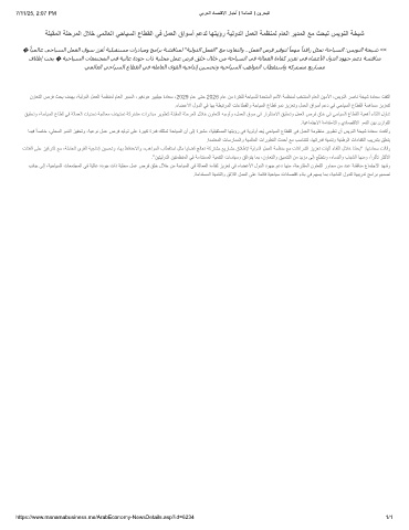 � ﺎﯿﻤﻟﺎﻋ ﻲﺣﺎﯿﺴﻟا ﻞﻤﻌﻟا قﻮﺳ زﺰﻌ ُ ﺗ ﺔﯿﻠﺒﻘﺘﺴﻣ تاردﺎﺒﻣو ﺞﻣاﺮﺑ ﺔﺸﻗﺎﻨﻤﻟ "ﺔﯿﻟوﺪﻟا ﻞﻤﻌﻟا" ﻊﻣ نوﺎﻌﺘﻟاو ..ﻞﻤﻌﻟا صﺮﻓ ﺮﯿﻓﻮﺘﻟ ﺎﻤﮫﻣ اﺪﻓار ﻞﺜﻤﺗ ﺔﺣﺎﯿﺴﻟا :ﺲﻳﻮﻨﻟا ﺔﺨﯿﺷ <<