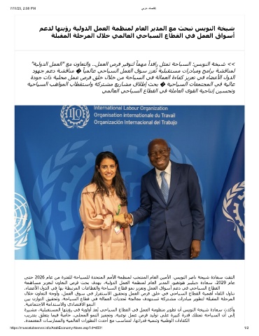 "ﺔﯿﻟوﺪﻟا ﻞﻤﻌﻟا" ﻊﻣ نوﺎﻌﺘﻟاو ..ﻞﻤﻌﻟا صﺮﻓ ﺮﯿﻓﻮﺘﻟ ﺎﻤﮫﻣ اﺪﻓار ﻞﺜﻤﺗ ﺔﺣﺎﯿﺴﻟا :ﺲﻳﻮﻨﻟا ﺔﺨﯿﺷ <<