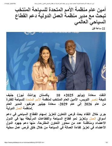 ةﺮﺘﻔﻠﻟ ﺔﺣﺎﯿﺴﻠﻟ ةﺪﺤﺘﻤﻟا ﻢﻣﻷا ﺔﻤﻈﻨﻤﻟ ﺐﺨﺘﻨﻤﻟا مﺎﻌﻟا ﻦﯿﻣﻷا ،ﺲﯾﻮﻨﻟا ﺮﺻﺎﻧ ﺔﺨﯿﺷ