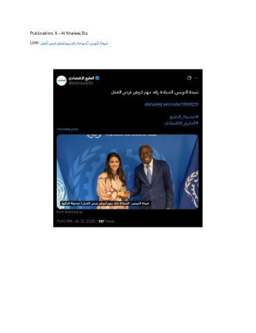 Publication: X – Al Khaleej Biz Link: لمعلا صرف ريفوتل مهم دفار ةحايسلا :سيونلا ةخيش