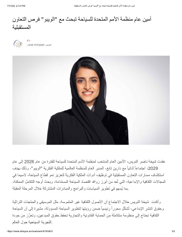 7/11/25, 2:13 PM ﺔﯾﻠﺑﻘﺗﺳﻣﻟا نوﺎﻌﺗﻟا صرﻓ "وﺑﯾوﻟا" ﻊﻣ ثﺣﺑﺗ ﺔﺣﺎﯾﺳﻠﻟ ةدﺣﺗﻣﻟا مﻣﻷا ﺔﻣظﻧﻣ مﺎﻋ نﯾﻣأ