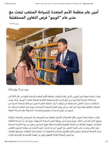 7/11/25, 2:13 PM ﺔﯾﻠﺑﻘﺗﺳﻣﻟا نوﺎﻌﺗﻟا صرﻓ "وﺑﯾوﻟا" مﺎﻋ رﯾدﻣ ﻊﻣ ثﺣﺑﺗ بﺧﺗﻧﻣﻟا ﺔﺣﺎﯾﺳﻠﻟ ةدﺣﺗﻣﻟا مﻣﻷا ﺔﻣظﻧﻣ مﺎﻋ نﯾﻣأ - Nas News UAE