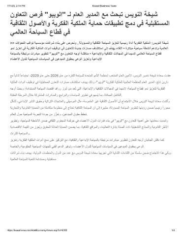 ﺔﺣﺎﯾﺳﻟﺎﺑ ﺔطﺑﺗرﻣ تاردﺎﺑﻣ رﯾوطﺗﻟ "وﺑﯾوﻟا" ﻊﻣ نوﺎﻌﺗﻟا ﮫﺟوأ ﺔﺷﻗﺎﻧﻣ • ﺔﯾﻋادﺑﻹاو ﺔﯾﻓﺎﻘﺛﻟا تﻻﺎﺟﻣﻟا ﻲﻓ ﺎﻣﯾﺳﻻ ﻲﻣﻟﺎﻌﻟا ﺔﺣﺎﯾﺳﻟا عﺎطﻗ