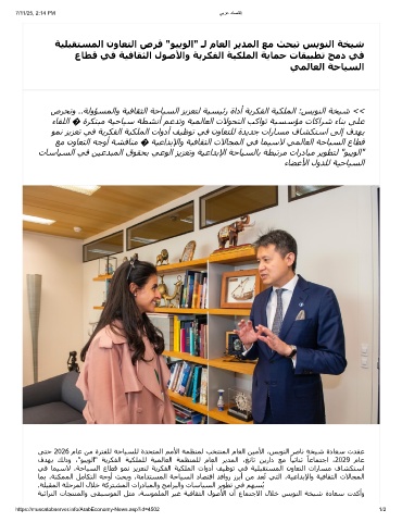 ﺔﯿﻠﺒﻘﺘﺴﻤﻟا نوﺎﻌﺘﻟا صﺮﻓ "ﻮﺒﻳﻮﻟا" ـﻟ مﺎﻌﻟا ﺮﻳﺪﻤﻟا ﻊﻣ ﺚﺤﺒﺗ ﺲﻳﻮﻨﻟا ﺔﺨﯿﺷ