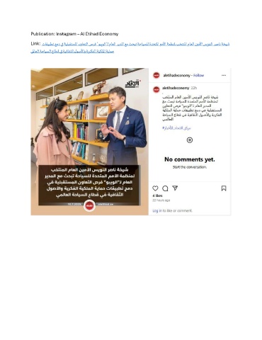 Publication: Instagram – Al Etihad Economy Link: تاقيبطت جمد يف ةيلبقتسلما نواعتلا صرف "وبيولا"ـل ماعلا ريدلما عم ثحبت ةحايسلل ةدحتلما مملأا ةمظنلم بختنلما ماعلا نيملأا سيونلا رصان ةخيش يلماعلا ةحايسلا عاطق يف ةيفاقثلا لوصلأاو ةيركفلا ةيكللما ةيامح