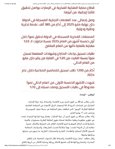 7/11/25, 8:32 AM مادﺗﺳﻣﻟاو ﻲﻋادﺑﻹا دﺎﺻﺗﻗﻻا زﯾزﻌﺗو رﺎﻛﺗﺑﻻا ﻲﻓ ﺎﮭﺗﻣھﺎﺳﻣ مﻋدو ﺔﯾرﻛﻔﻟا ﺔﯾﻛﻠﻣﻟا رﯾوطﺗﻟ ﺔﯾﻟودﻟا ﺎﮭﺗﺎﻛارﺷ ﻊﯾﺳوﺗ ﻰﻠﻋ ﺎﮭﺻرﺣ دﻛؤﺗ تارﺎﻣﻹا