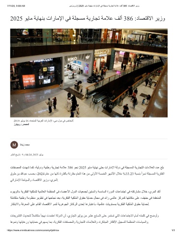 2025 ﻮﯾﺎﻣ ﺔﯾﺎﮭﻨﺑ تارﺎﻣﻹا ﻲﻓ ﺔﻠﺠﺴﻣ ﺔﯾرﺎﺠﺗ ﺔﻣﻼﻋ ﻒﻟأ 386 :دﺎﺼﺘﻗﻻا ﺮﯾزو