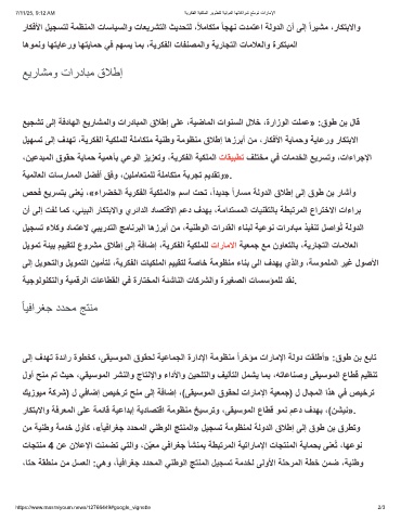 ﻰﻟإ فدﮭﺗ ةدﺋار ةوطﺧﻛ ،ﻰﻘﯾﺳوﻣﻟا قوﻘﺣﻟ ﺔﯾﻋﺎﻣﺟﻟا ةرادﻹا ﺔﻣوظﻧﻣ ًارﺧؤﻣ تارﺎﻣﻹا ﺔﻟود تﻘﻠطأ» :قوط نﺑ ﻊﺑﺎﺗ