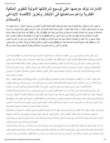 ﺎھزرﺑأ نﻣ ،ﺔﯾﺑﺎﺟﯾإ ﺎﺟﺋﺎﺗﻧ ﻖﯾﻘﺣﺗ لﺻاوﯾ تارﺎﻣﻹا ﻲﻓ ﺔﯾرﻛﻔﻟا ﺔﯾﻛﻠﻣﻟا ﺔﯾﺎﻣﺣ عﺎطﻗ • ﺔﯾرﻛﻔﻟا ﺔﯾﻛﻠﻣﻟا لﻼﺧ نﻣ رﺎﻛﺗﺑﻻا زﯾﻔﺣﺗﻟ ﺔﯾﻟودﻟا: o لﺻو