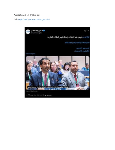 Publication: X – Al Khaleej Biz ّ Link: #ةيركفلا ةيكللما ريوطتل ةيلودلا اهتاكارش عسوت تاراملإا