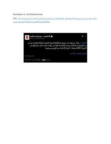 Publication: X – Al Etihad Economy Link: للاخ ،مادتسلماو يعادبلإا داصتقلاا زيزعتو راكتبلاا يف اهتمهاسم معدو ةيركفلا ةيكللما ريوطتل ةيلودلا اهتاكارش عيسوت ىلع اهصرح دكؤت تاراملإا# ارسيوسب وبيولا يف ءاضعلأا لودلا تايعمجل 66 ـلا ةرودلا يف اهتكراشم