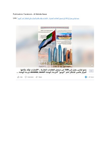 Publication: Facebook – Al Wahda News Link: "وبيولا" مامأ راكتبلال يلماع زكرمك اهتناكم دكؤت تاراملإا# .. ةيراجتلا تاملاعلا ليجست يف %89 ىلإ لصي ي سايق ومنب