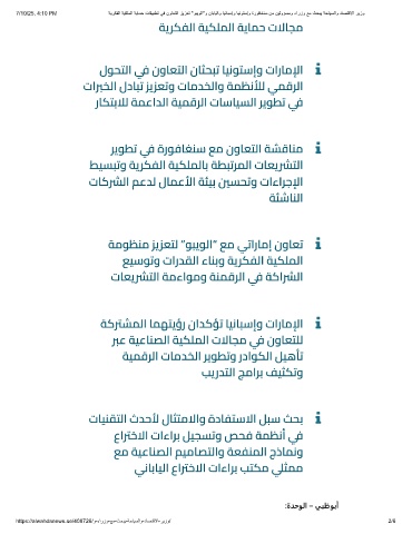 7/10/25, 4:10 PM ﺔﯾرﻛﻔﻟا ﺔﯾﻛﻠﻣﻟا ﺔﯾﺎﻣﺣ تﺎﻘﯾﺑطﺗ ﻲﻓ نوﺎﻌﺗﻟا زﯾزﻌﺗ "وﺑﯾوﻟا"و نﺎﺑﺎﯾﻟاو ﺎﯾﻧﺎﺑﺳإو ﺎﯾﻧوﺗﺳإو ةروﻓﺎﻐﻧﺳ نﻣ نﯾﻟوؤﺳﻣو ءارزو ﻊﻣ ثﺣﺑﯾ ﺔﺣﺎﯾﺳﻟاو دﺎﺻﺗﻗﻻا رﯾزو