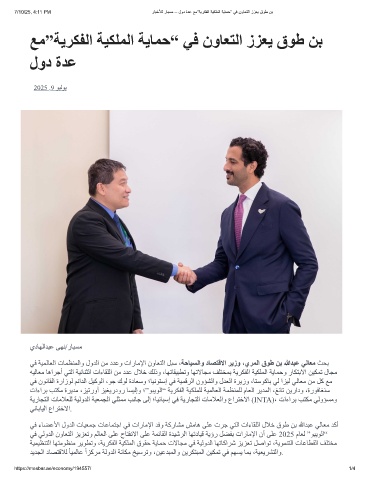 7/10/25, 4:11 PM رﺎﺑﺧﻸﻟ رﺎﺑﺳﻣ – لود ةدﻋ ﻊﻣ”ﺔﯾرﻛﻔﻟا ﺔﯾﻛﻠﻣﻟا ﺔﯾﺎﻣﺣ“ ﻲﻓ نوﺎﻌﺗﻟا ززﻌﯾ قوط نﺑ