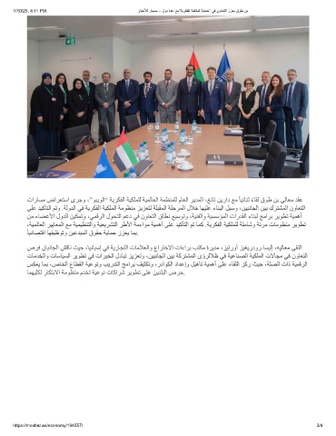 تارﺎﺴﻣ ضاﺮﻌﺘﺳا ىﺮﺟو ،”ﻮﺒﯾﻮﻟا“ ﺔﯾﺮﻜﻔﻟا ﺔﯿﻜﻠﻤﻠﻟ ﺔﯿﻤﻟﺎﻌﻟا ﺔﻤﻈﻨﻤﻠﻟ مﺎﻌﻟا ﺮﯾﺪﻤﻟا ،ﻎﻧﺎﺗ ﻦﯾراد ﻊﻣ ً ﺎﯿﺋﺎﻨﺛ ًءﺎﻘﻟ قﻮط ﻦﺑ ﻲﻟﺎﻌﻣ ﺪﻘﻋ