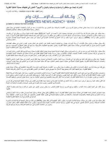 7/10/25, 4:11 PM UAE News - ﺔﯾرﻛﻔﻟا ﺔﯾﻛﻠﻣﻟا ﺔﯾﺎﻣﺣ تﺎﻘﯾﺑطﺗ ﻲﻓ نوﺎﻌﺗﻟا "وﺑﯾوﻟا"و نﺎﺑﺎﯾﻟاو ﺎﯾﻧﺎﺑﺳإو ﺎﯾﻧوﺗﺳإو ةروﻓﺎﻐﻧﺳ ﻊﻣ ثﺣﺑﺗ تارﺎﻣﻹا - تارﺎﻣﻹا رﺎﺑﺧأ