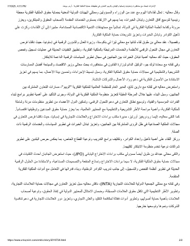 ﺔطﺣﻣ ﺔﯾرﻛﻔﻟا ﺔﯾﻛﻠﻣﻟا قوﻘﺣ ﺔﯾﺎﻣﺣﺑ ﺔﯾﻧﻌﻣﻟا ﺔﯾﻟودﻟا تﺎﺋﯾﮭﻟا ﻲﻠﺛﻣﻣو نﯾﻟوؤﺳﻣﻟاو ءارزوﻟا نﻣ ددﻋ ﻊﻣ موﯾﻟا ﺎﻧﺗاءﺎﻘﻟ لﺛﻣﺗ : ﮫﯾﻟﺎﻌﻣ لﺎﻗو